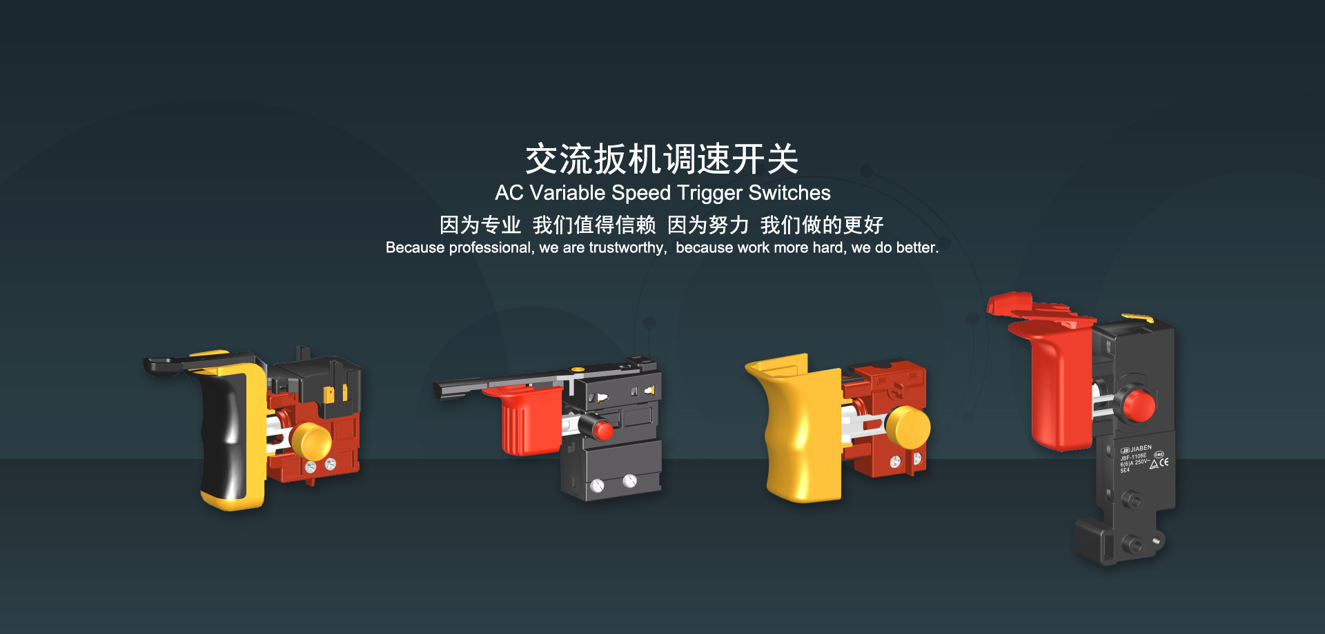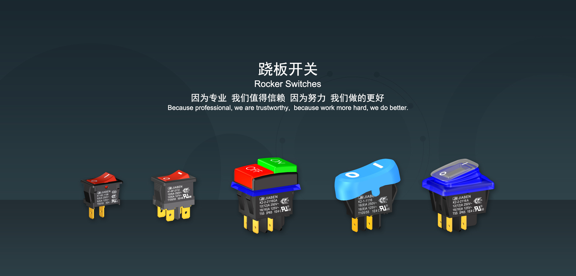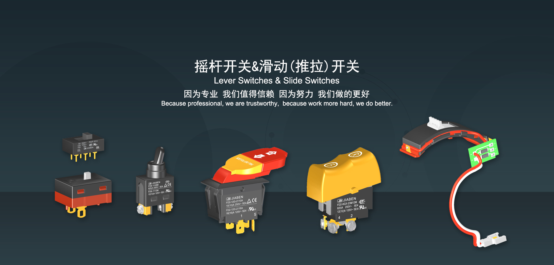 浙江佳奔電子有限公司始建于1986年,坐落于浙江省樂清市虹橋鎮(zhèn)東電子信息產(chǎn)業(yè)園內,現(xiàn)有職工700多人,資產(chǎn)總額超3億元。公司主要經(jīng)營“JIABEN”牌微動開關、蹺板開關、按鈕開關、扳機開關、調速開關和電位器開關等各類交、直流器具開關和各類交、直流線路板模塊等產(chǎn)品,主要應用于交、直流電動工具、電動園林工具、清潔器具、家用電器和小型機床等行業(yè),是集產(chǎn)品設計、研發(fā)、制造、銷售和服務于一體的國家高新技術企業(yè)。JIABEN was founded in 1986, located in East Electronic Information Industry Park, Hongqiao Town, Yueqing City, Zhejiang Proviance, existing staff more than 700 peoples, more than 300 million RMB worth of assets. Company is mainly engaged in "JIABEN" brand Micro Switch, Rocker Switch, Push-button Switch, Trigger Switch, Speed Regulating Switch, Potentiometer Switch and other kinds of appliance switch and all kinds of AC or DC circuit board module, such as more than 100 series, 8000 kinds of models of products, mainly used in AC or DC Power-tools, Power Gardening Tools, Cleaning Appliances, Household Appliances and Small Machine Tool and other industries, is the collection product design, research and development, manufacturing, sales and service in one of the national high and new technology enterprise.